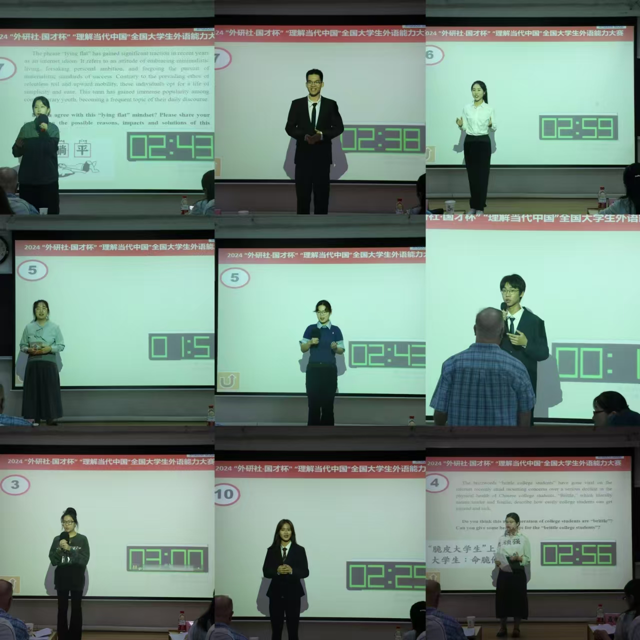 为了深入贯彻党的二十大精神,旨在推动“三进”工作、创新课程思政,深化教育改革、培育外语人才,讲好中国故事、服务国际传播。我校于9月28日在外国语学院301教室举办“外研社·国才杯”全国英语演讲比赛校园选拔赛复赛。本次活动由公共外语教学部主办,大学生英语社团承办,在集体师生的积极参与配合下,比赛圆满完成。