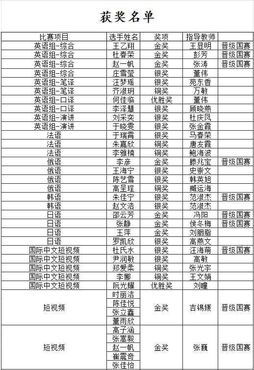 本届大赛设置英语综合能力、笔译、口译、演讲、短视频以及多语种、来华留学生中文短视频七大赛项。自9月初大赛启动以来,公共外语教学部积极筹划,协调外国语学院、翻译学院、国际教育学院等单位,高质量圆满完成了校赛的组织工作和省赛选手的推荐工作。