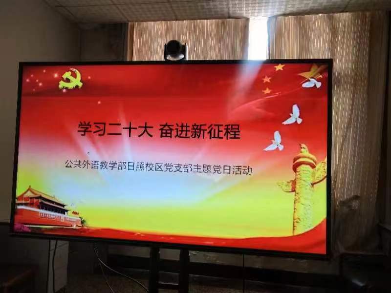 11月26日,公共外语教学部日照校区党支部在JC1002举行了“学习二十大,奋进新征程”主题党日活动,会议由支部书记杜庆凤主持,全体党员参加。