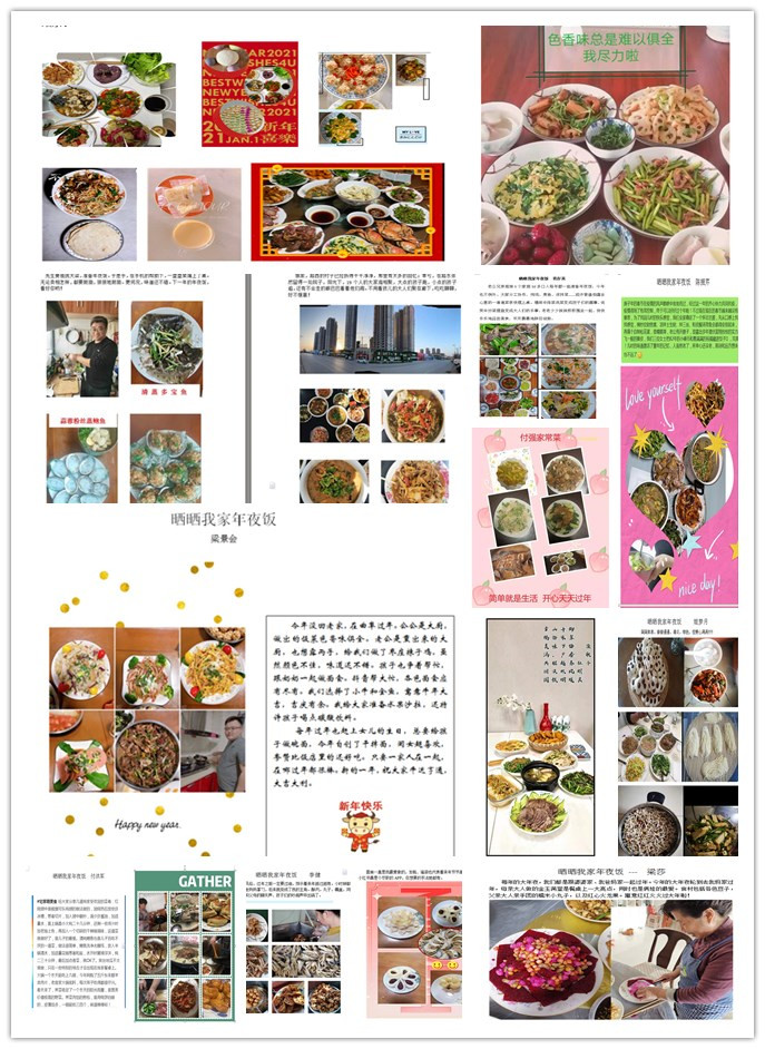 在2021年新春到来之际,米兰(中国)推出“晒晒我家年夜饭”新春年夜饭征集评比活动。邀请全体教职工参加自家年夜饭的“招牌菜”评比,同时也把各类拿手菜品的制作方式、烹饪心得等和全体老师一起分享,共同传递新年的喜庆和祝福。本次征集活动目的是为了引领健康餐桌、文明餐桌的新风尚,激发教职工们对传统文化和风俗的热爱。