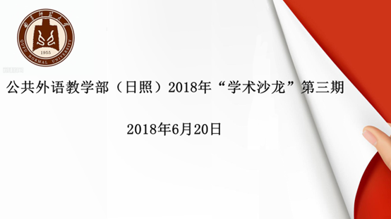 6月20日,公共外语教学部(日照校区)成功举办了2018年第三期“学术沙龙”。本期沙龙邀请赴美国纽约城市大学访学学成归来的聂新艳副教授做了题为“美国公立大学教学模式初探——以纽约城市大学为例”的专题报告。本次研讨活动由孙伟副教授主持。