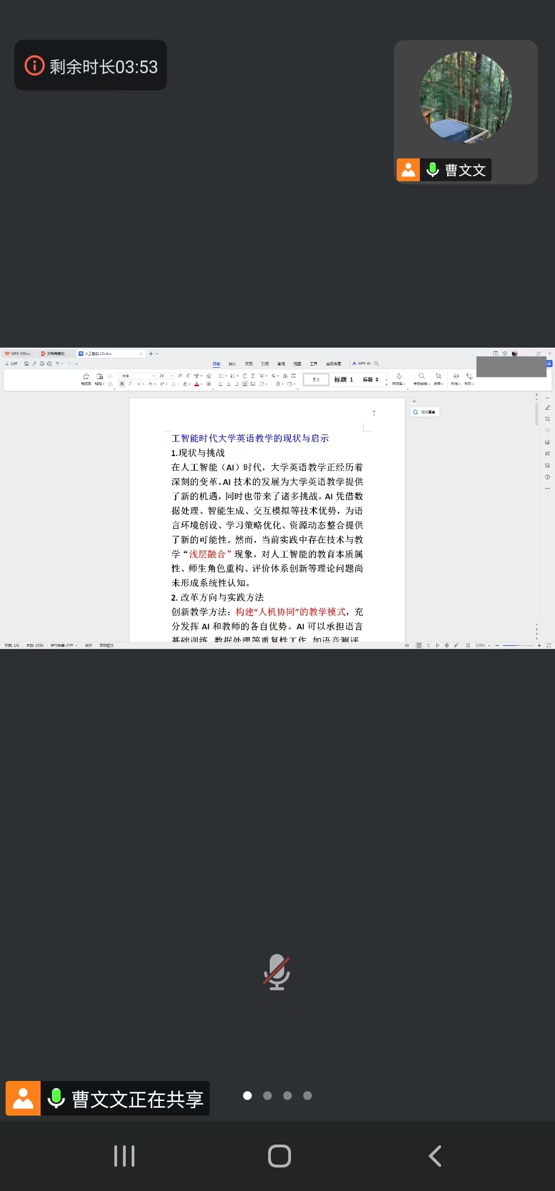2025年6月30日,公共外语教学部语言教学研究团队(日照)开展题为“AI辅助下科研论文写作”的研讨会,主要围绕科研进展、方向及AI学术应用方面展开。研讨会由曹文文主持。