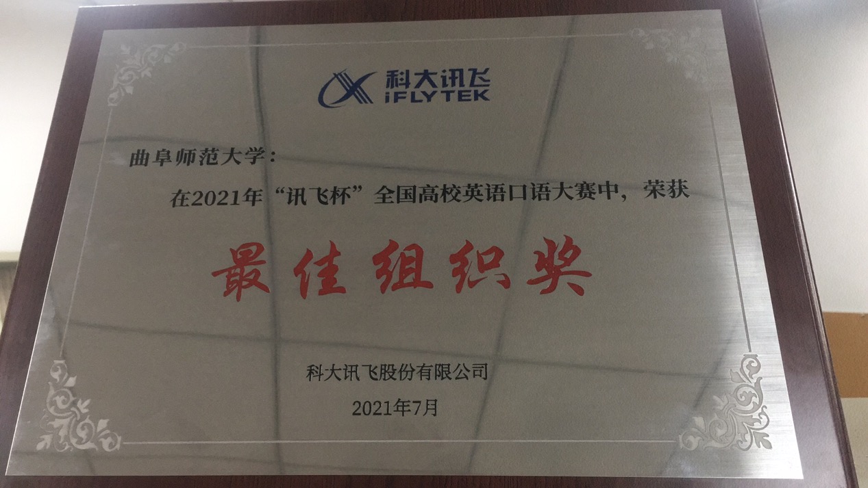 中国共产党成立100周年之际,为回顾党的奋斗历史,继承和发扬党的光荣传统,加强高校意识形态建设,丰富高校党建活动的形式,科大讯飞高教产品线特别策划主题赛事活动,以激发大学生的历史责任感、使命感和荣誉感,展示当代大学生有理想、有本领、有担当的精神风貌。在5月24日-6月15日举办的2021年“讯飞杯”全国高校英语口语大赛山东赛事中,公共外语教学部积极筹备,发动学生参赛,取得了山东赛区比赛规模和参赛人数和获奖人数第一名的好成绩。本次大赛中,山东省口语大赛开通赛事权限高校51家,有比赛数据的43家,17000名同学参与,约9000人完成赛事,我校921名同学参加,89名同学获奖,其中特等奖1名、一等奖1名、二等奖4名、三等奖17名,优秀奖41名,相应教师获得“优秀指导教师”奖。米兰官方网站公共外语教学部获得“最佳组织奖”称号。
