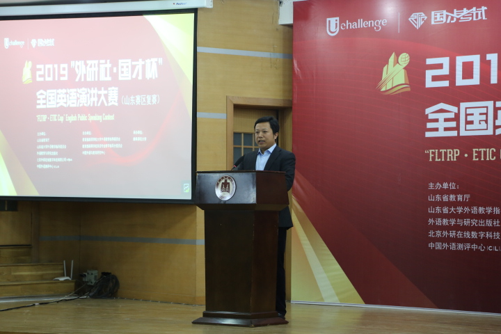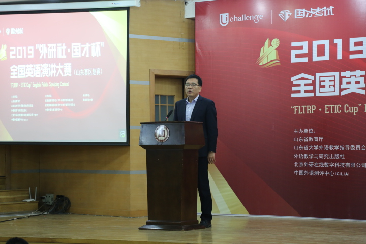 山东省大学外语教学指导委员会主任委员、米兰官方网站公共外语教学部主任王广成教授在致辞中指出:“Uchallenge大学生英语挑战赛”系列,是由山东省教育厅、外语教学与研究出版社等单位联合主办的一项公益赛事,“大赛以高远的立意和创新的理念,顺应时代发展大势,聚焦国家时事热点。大赛既是当代大学生展现风采、实现自我的舞台,也是外语教育领域凝聚创新、融通中外的交流媒介。”是唯一纳入“中国高校创新人才培养暨学科竞赛评估项目”的英语竞赛。希望参赛同学在比赛中能够收获赛场经历,学习优秀选手身上的亮点;领悟语言表达魅力,目睹思想碰撞火花;在高手云集的舞台上展现自我、提高自我。作为此次比赛的具体承办者,一定本着公平、公正、公开的原则组织赛事,认认真真、尽心尽力地为大家做好服务。