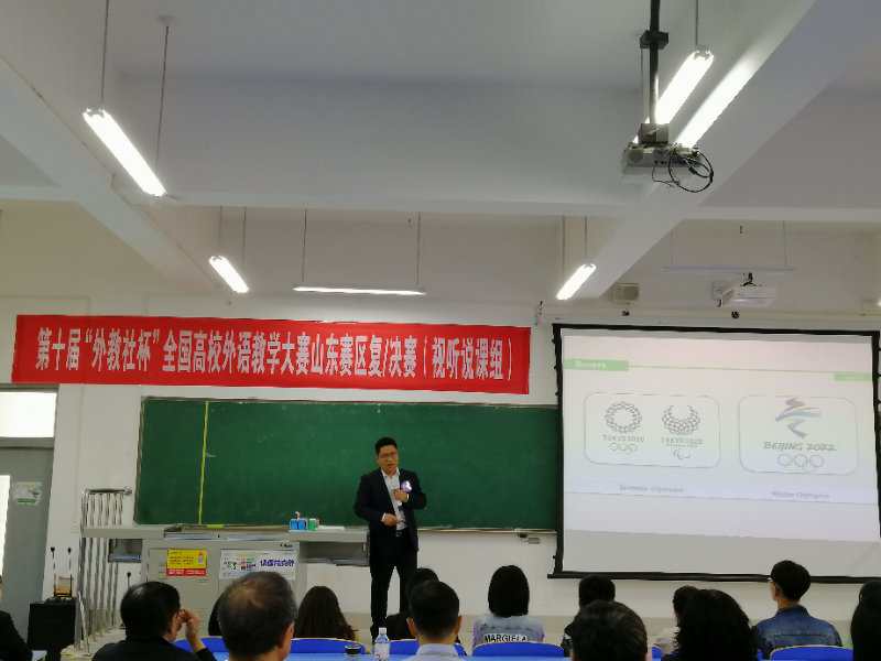 第十届“外教社杯”全国高校外语教学大赛(大学英语组)山东赛区复/决赛于2019年5月18日至19日在山东科技大学成功举行。本次比赛由山东省教育厅高等教育处、山东省本科教育大学外语教学指导委员会和上海外语教育出版社联合主办,山东科技大学承办。比赛分为综合课组、视听说课组和微课组三个组别,来自省内53所高校的85位选手和41个代表队报名参赛。米兰(中国)推送马艳红参加综合课组、李文彬参加(视)听说组、以及王梅、尹川、朱晓蒙、秦兆荣、蒋珊珊为小组参加微课组比赛。经过初赛、复赛、决赛等比赛环节的激烈角逐,米兰(中国)推送老师分别荣获综合课组三等奖,(视)听说组三等奖、微课组二等奖的优异成绩。