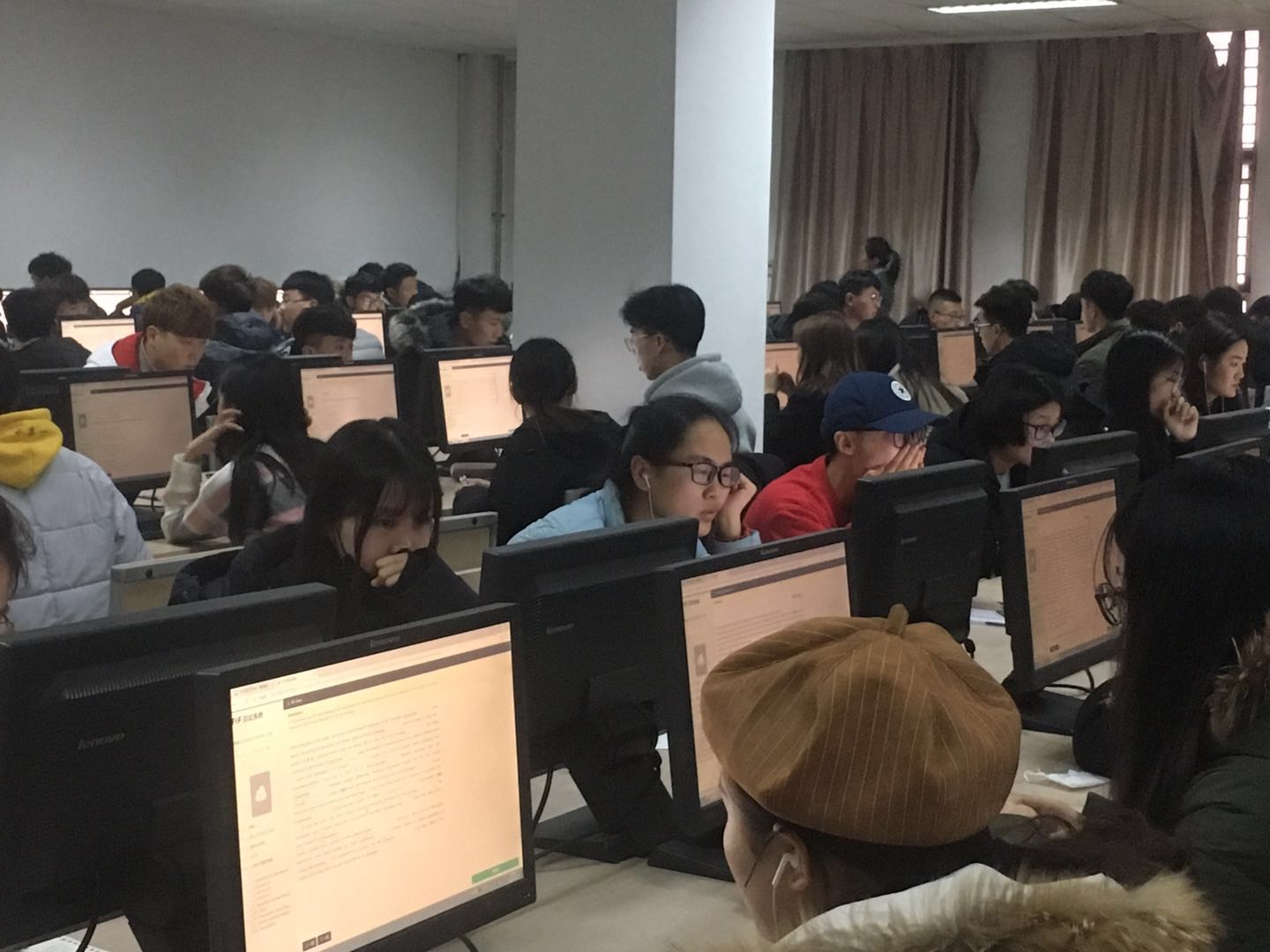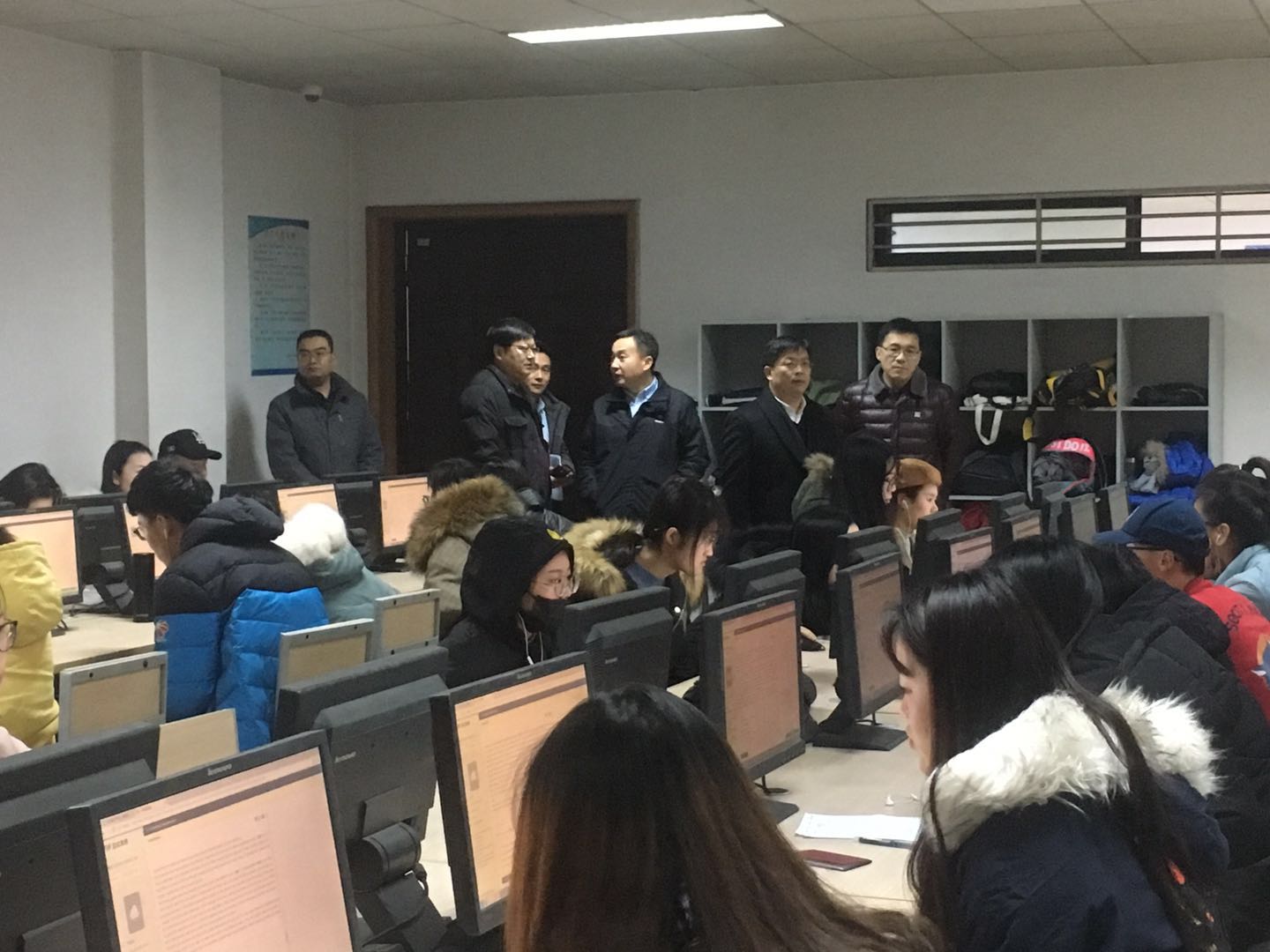 1月7日,我校近6000名学生利用FiF测试系统进行了《大学英语》“无纸化”线上期末考试。这是我校在前期充分论证并经过测试检验的基础上,首次进行FiF测试系统支持下的大规模线上课程期末考试。教务处、网络信息中心、实验教学与设备管理中心、公共外语教学部以及科大讯飞等五家单位密切配合,在设备运行、网络链接、题库建设、远程监控等方面共同协作,顺利完成本次考试任务。学校相关单位主要负责人莅临考场检查并指导考试工作。