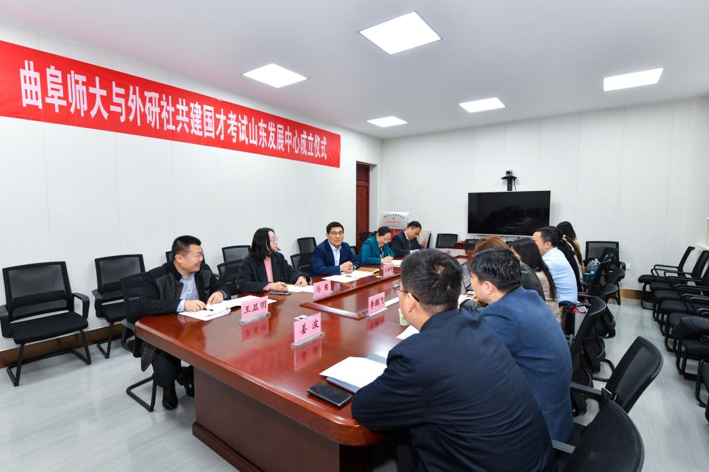 仪式上,胡凡刚副校长与冯涛总经理共同为“国际人才英语考试山东发展中心”揭牌,曲师大教务处处长李傅山与外研社高等营销中心华东大区总经理李洪旺为“米兰官方网站国际人才培养基地”揭牌。两大平台的成立,将为山东省高校国际化人才培养提供重要支撑。